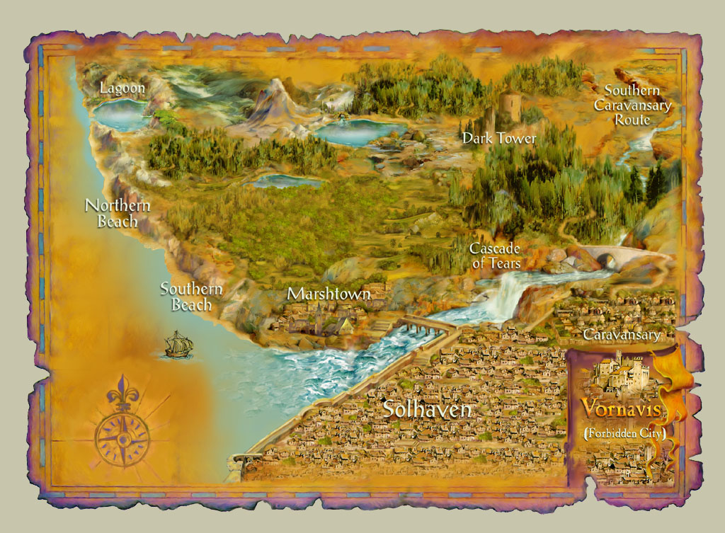The building being a lighthouse is fine, but if it's to be at all functional, the location is not a good fit. Where it's proposed is basically near where the Cairnfang River pours down into Solhaven Bay. The ocean itself is more south and west of this Marshtown location. Since a lighthouse is a jutting out point to avoid land, I don't think we'd find a lighthouse here in this area.